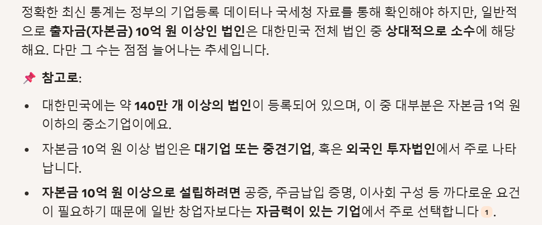 대한민국에 자본금이 10억이상 되는 중소기업은 얼마나 있나요?