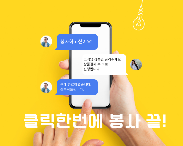 이제 봉사도 마음 편하게! 클릭한번으로 끝내세요. 사진촬영 및 인터뷰 기사 서비스 가능!