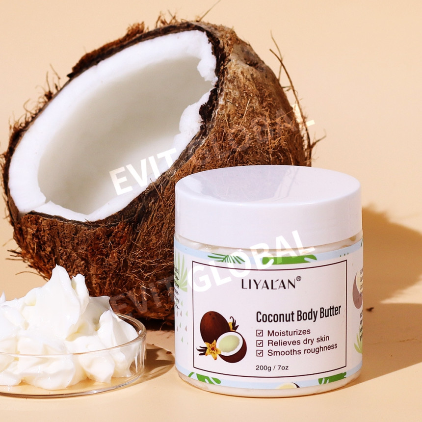 COCONUT BODY BUTTER: Moisturizes; Relieves dry skin; Smooths roughness.