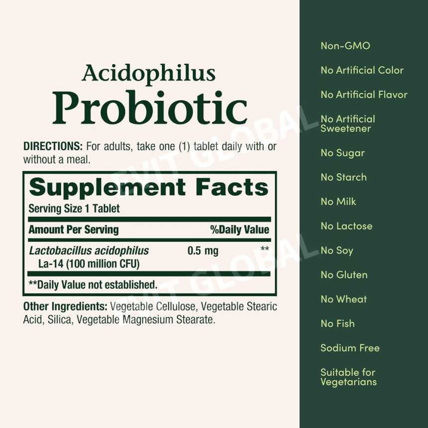 글루텐, 유제품 및 밀 없음: Nature's Bounty Acidophilus Probiotic은 글루텐, 유제품, 밀이 없으며 채식주의자에게 적합합니다.