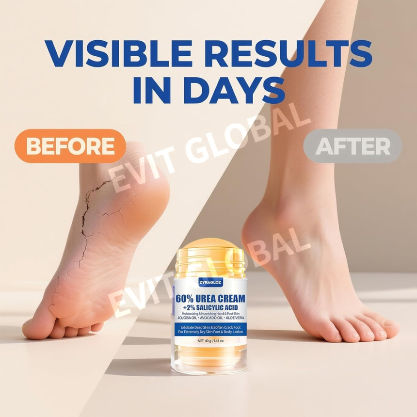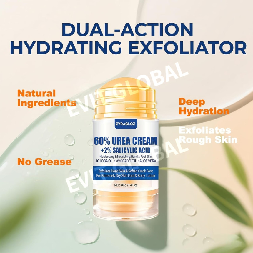 【며칠 만에 갈라진 발뒤꿈치 싹 다스리기】 자이라글로즈의 60% 우레아 + 2% 살리실산 포뮬러가 건조하고 갈라진 발뒤꿈치와 굳은살에 "보습 부스트" 효과를 선사합니다. 최대 효능의 우레아 크림 스틱이 발, 팔꿈치, 무릎의 두꺼운 피부층에 침투하여 딱딱한 부분을 부드럽게 하고 깊은 갈라짐을 매끄럽게 가꿔줍니다. 매일 바르면 며칠 만에 피부가 눈에 띄게 부드러워지는 것을 느낄 수 있습니다. 양말이나 침대시트 고통은 이제 그만!