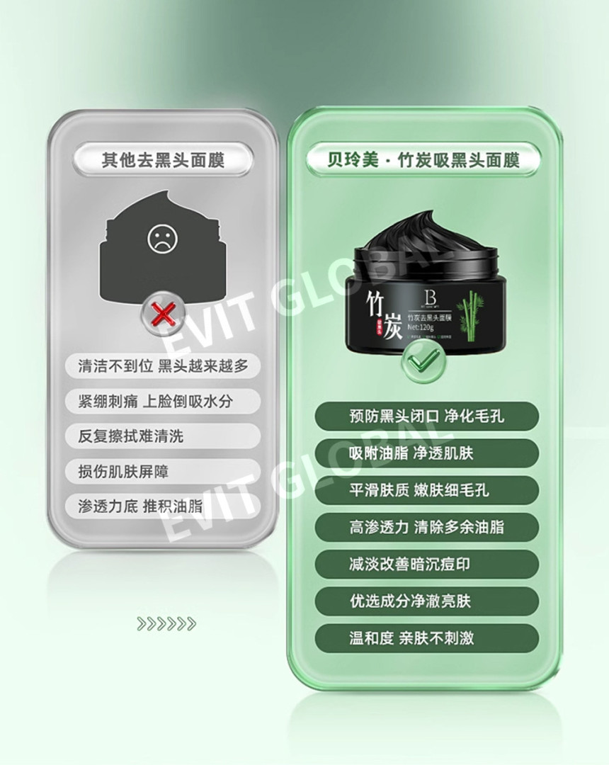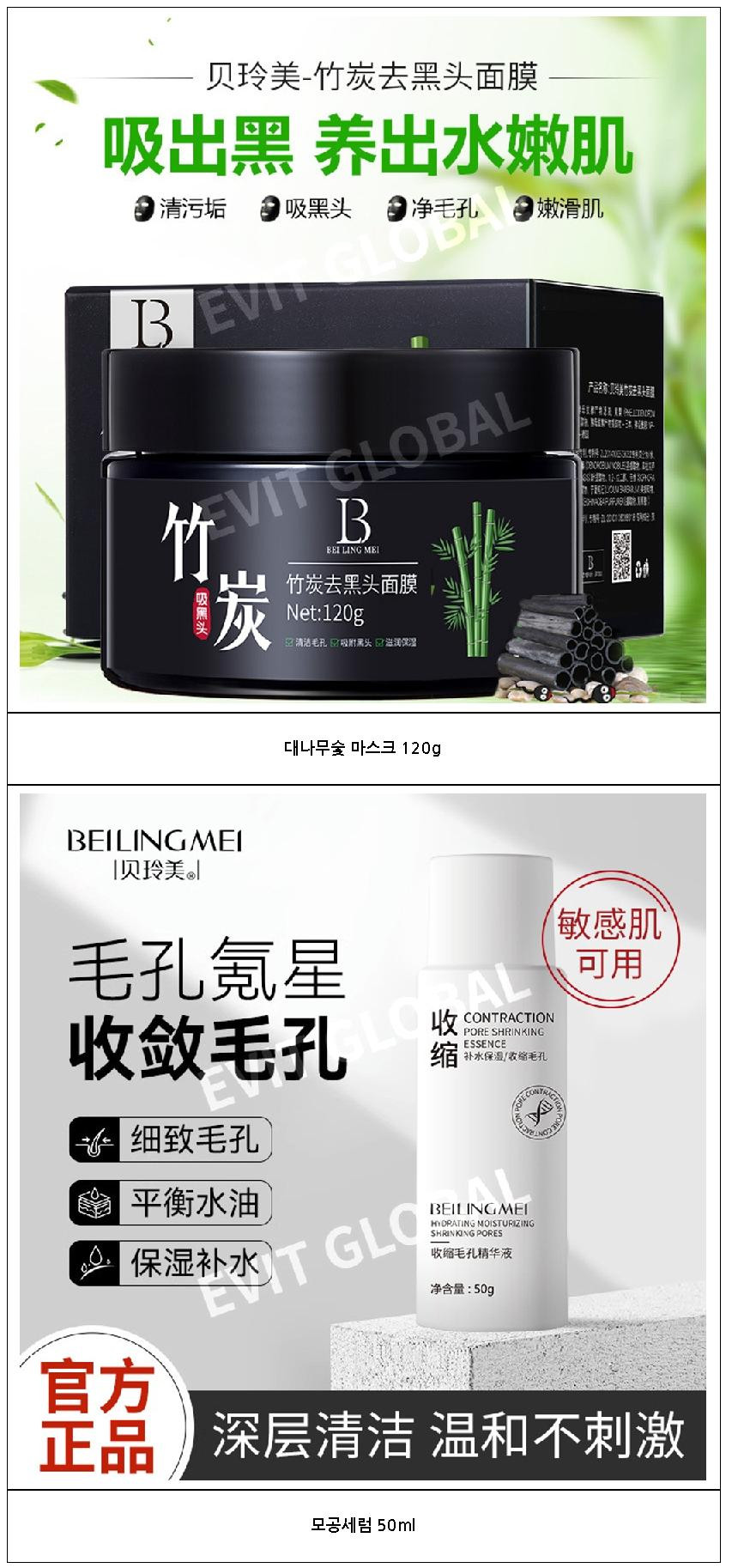 베이링메이 숯 코팩 50매 블랙헤드 제거 贝玲美竹炭去黑头面膜120g