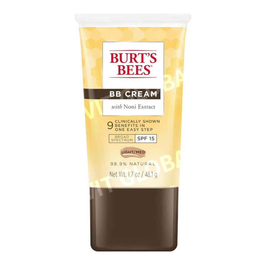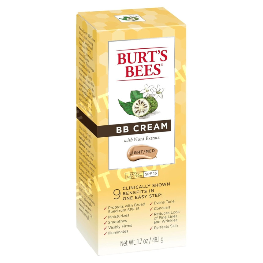 버츠비 BB 크림 SPF 15로 가벼운 파운데이션과 뛰어난 보습 로션의 효과를 한 번에 누리세요. 모든 피부 타입에 적합하도록 설계된 이 라이트/미디엄 틴티드 모이스처라이저는 SPF와 노니 추출물이 함유되어 있으며, 임상적으로 9가지 효과가 입증되었습니다. 피부 보습, 탄력 강화, 커버, 매끈함, 완벽함, 그리고 윤기 부여에 도움을 줍니다. 이 BB 크림 파운데이션은 광범위한 SPF 15 자외선 차단 효과 외에도 피부톤을 균일하게 하고 미세주름과 주름을 눈에 띄게 줄여줍니다. 98.9% 천연 유래 SPF BB 크림 틴티드 모이스처라이저는 파라벤, 프탈레이트, 페트롤라툼, SLS를 첨가하지 않았으며, 자연에서 얻은 성분으로 만들어졌고 리핑 버니 인증을 받았습니다(동물 실험을 하지 않았습니다). 햇볕에 노출되기 15분 전에 세안한 피부에 BB 크림을 충분히 바르세요. SPF BB 크림은 클렌저, 토너, 마스크 등 버츠비의 다른 페이셜 스킨케어 제품과 함께 사용하세요.