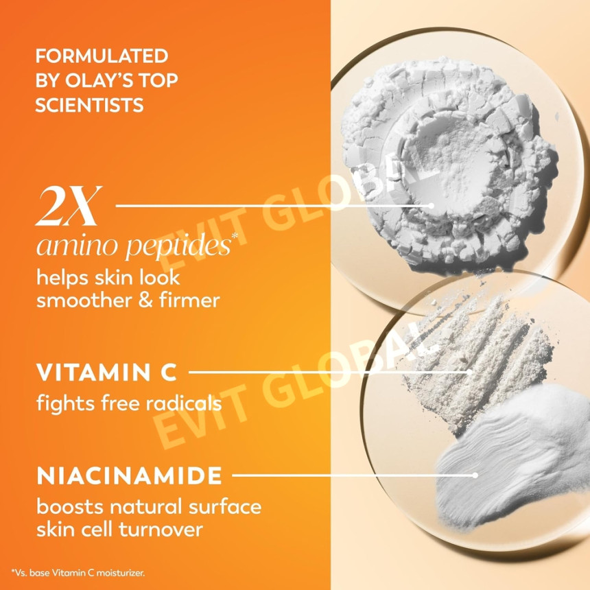 2배 더 밝아진 피부: 비타민 C + 펩타이드 24 맥스 페이스 모이스처라이저는 펩타이드가 2배 더 함유되어 있어 2배 더 밝은 피부를 선사합니다.** *비타민 C + 펩타이드 24 대비, **기본 모이스처라이저 대비**